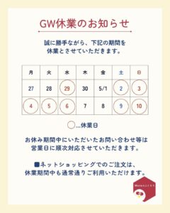 GW休業のお知らせ